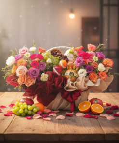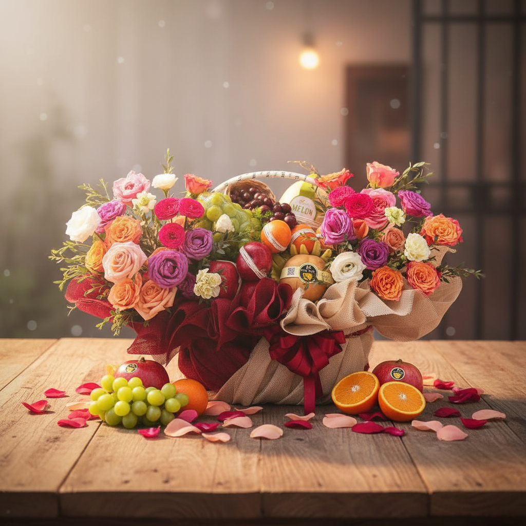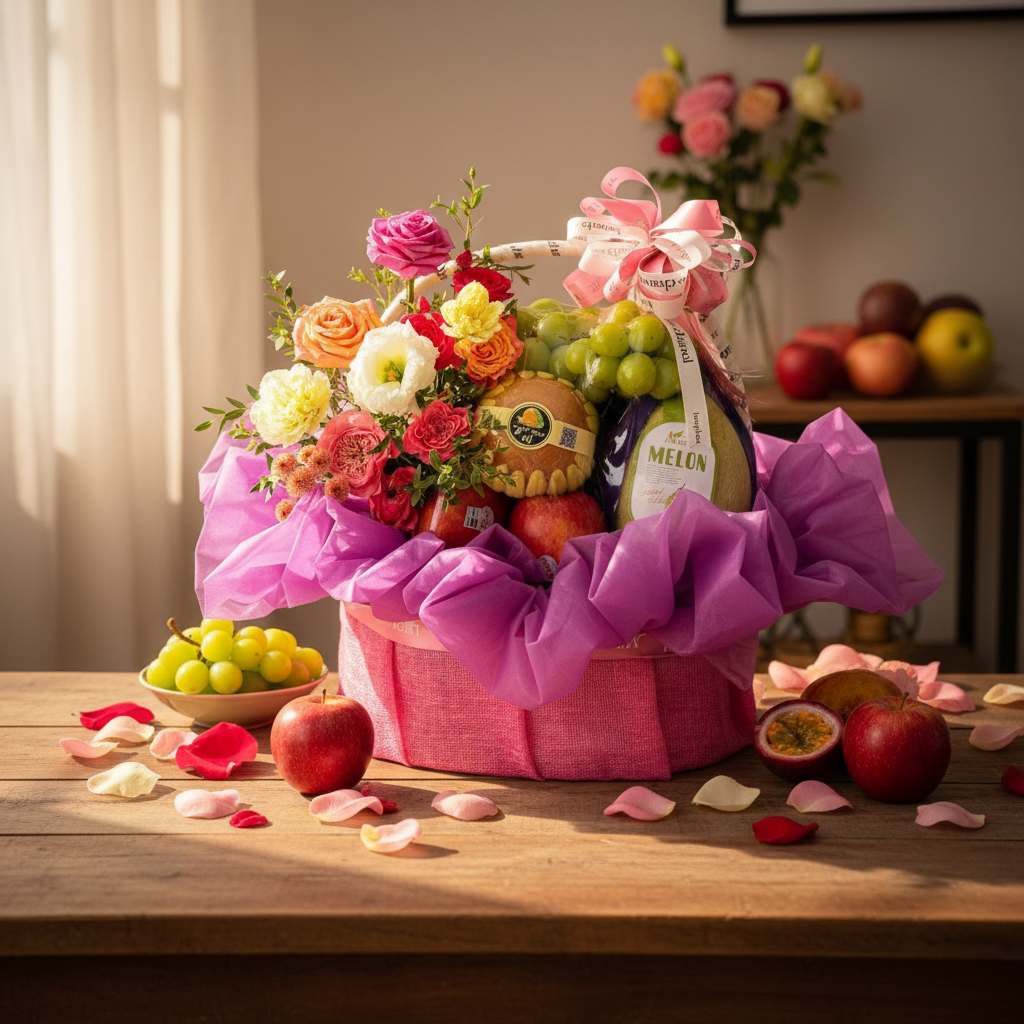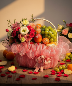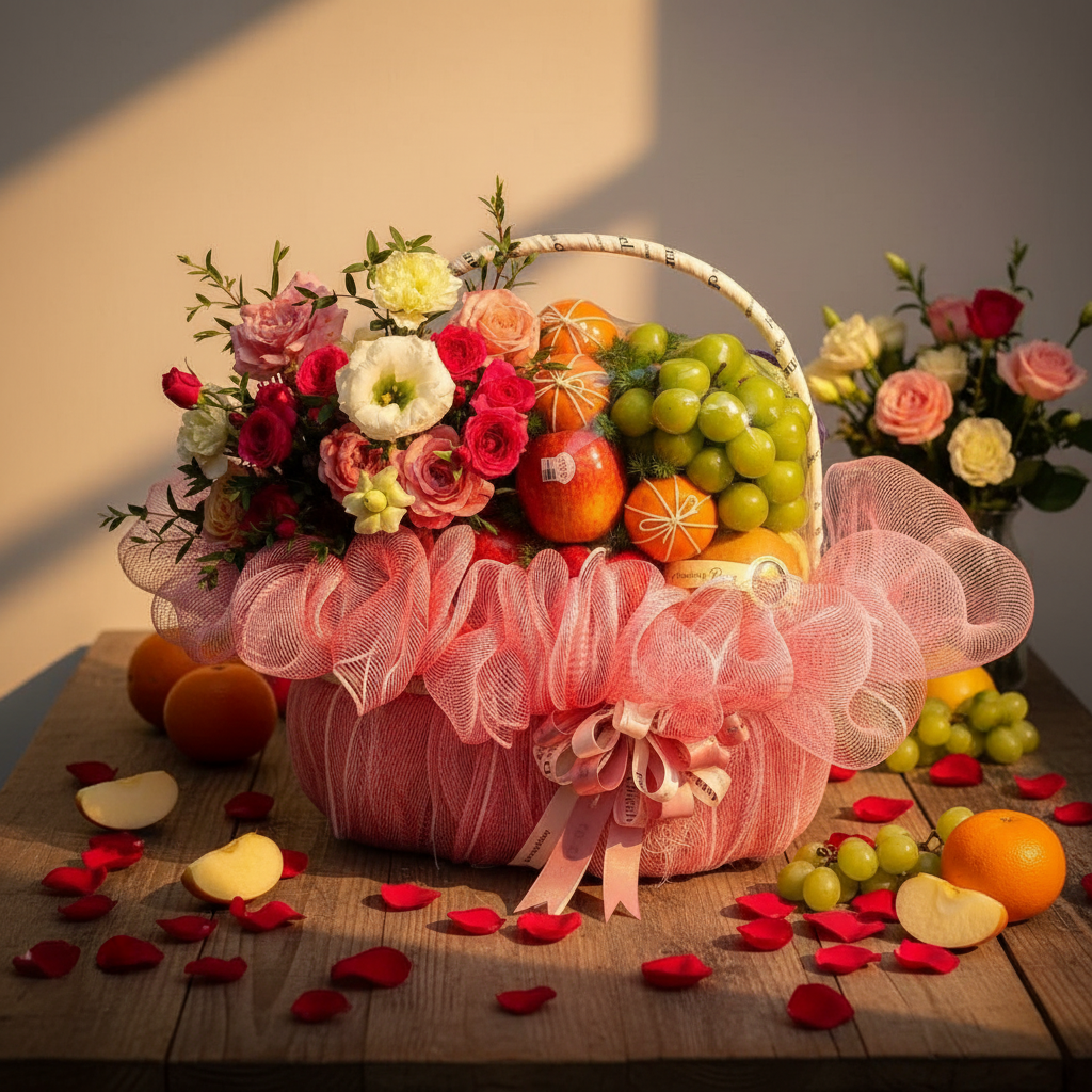 Từ trái cây nhập khẩu tươi ngon đến tone trang trí hồng – đỏ, mỗi giỏ đều mang thông điệp yêu thương và sự quan tâm chân thành.