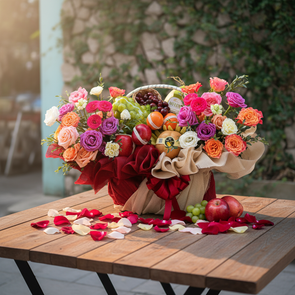 Sắc đỏ và hồng tượng trưng cho sự ngọt ngào – gắn kết – chân thành, kết hợp cùng trái cây tươi ngon tạo nên món quà tràn đầy cảm xúc.